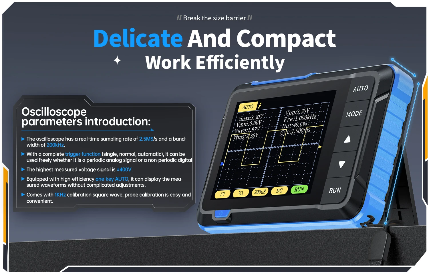 One-Click AUTO Mode: Displays waveforms instantly without complex adjustments.