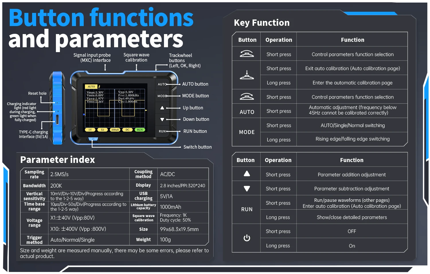 Voltage range:X1:40V (Vpp:80V) X10: 400V (Vpp :800V)